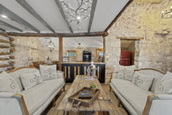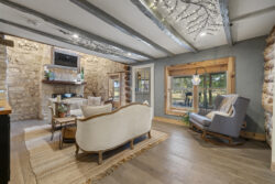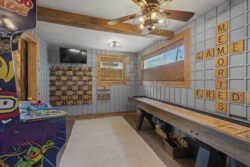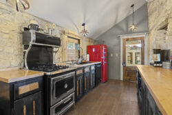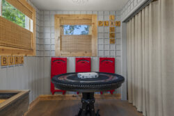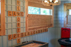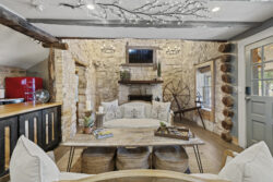 An unforgettable blend of history and whimsy nestled among an unexpected ridge view just minutes from downtown. This 1895 German rock and log homestead has been restored and updated with a surprise around every corner. Each space pulls you in and at the same time stops you in your tracks. Woodwork design features complement one of a kind design pieces. And if that weren’t enough, the nature views grab your attention and draw you outside where you want to kick back and relax as you watch the day unfold. Some unique surprises are a custom free play, 17,000 game arcade, string art wall, poker table, scrabble board wall, shuffleboard, wall chess, hanging television with complimentary streaming channels, rain head shower, hot tub and so much more. It’s an attraction all its own in this special jewel of a town – Fredericksburg.
